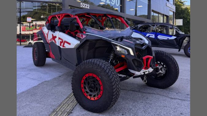 UTV Can-Am Maverick X3 Max X rc, ano 2024, com apenas 3.764 km de uso. Equipado com motor ACE Turbo RR de 200 hp, Direção Dinâmica Assistida (DPS), câmbio CVT, Sistema de Aceleração Inteligente (iTC), Injeção Eletrônica de Combustível (EFI), som de teto original, baú traseiro, meio para-brisa, para-choque traseiro, alargador de para-lamas, retrovisor, além de muito mais! Aproveite esta oportunidade!