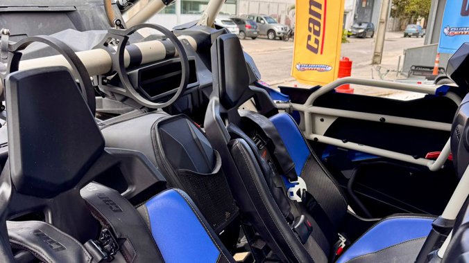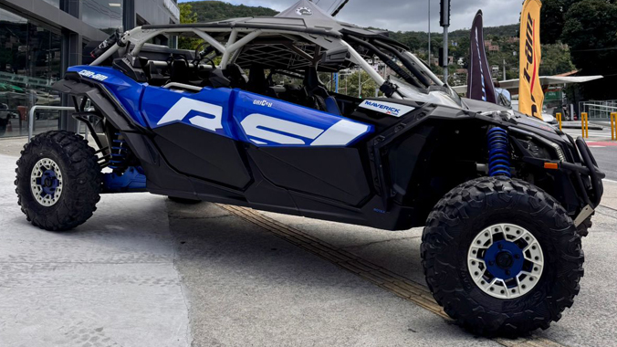 UTV Can-Am Maverick X3 Max Xrs Turbo RR com suspensão Smart-Shox, ano 2022, equipado com motor Rotax Turbo de 200 hp. Inclui os seguintes acessórios: complementos de porta, meio para-brisa, barra anti-intrusão, baú traseiro, alargadores de para-lamas, além de muito mais! Unidade com apenas 72 horas/1.732 km rodados. Venha ver de perto!