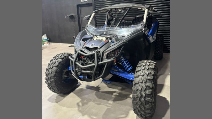 UTV Can-Am Maverick X3 Xrs Turbo RR, ano 2022, equipado com motor Rotax Turbo de 200 hp. Possui Câmbio CVT e DPS (Direção Dinâmica Assistida), painel digital, teto original, rodas de liga-leve com beadlock, amortecedores FOX de competição, e muito mais! Unidade com apenas 41 horas/906 km rodados. Aproveite esta oportunidade!