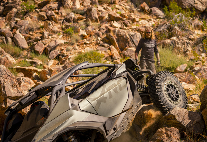 O Can-Am Maverick R Xrc 2026 é uma máquina verdadeiramente diferenciada: sua estabilidade em terrenos difíceis pode ser comprovada facilmente. Projetado para terrenos difíceis como subir em rochas, a sofisticada suspensão aguenta o tranco, devolvendo conforto e dirigibilidade mesmo em condições intensas de pilotagem.